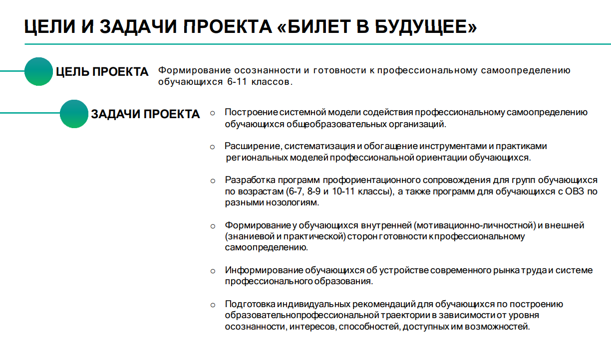Проект «БИЛЕТ В БУДУЩЕЕ» — Цели и задачи проекта